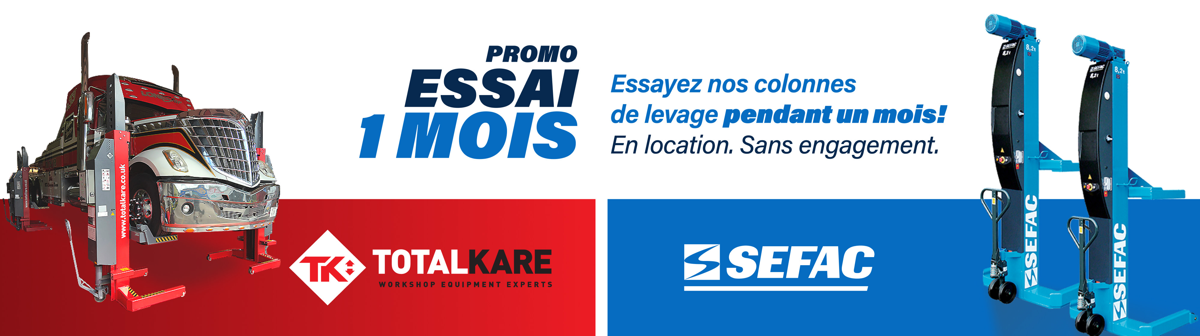 Sortez de la fosse! Travaillez sur tout type de véhicule lourd, à n’importe quelle hauteur, de façon sécuritaire et efficace. Optez pour la mobilité modulaire des colonnes sans câble TotalKare ou la fiabilité éprouvée des systèmes vis/écrou de SEFAC. Profitez de solutions de levage écoénergétiques, à faible entretien, qui réduisent les risques d’incendie et assurent la fluidité de vos opérations.